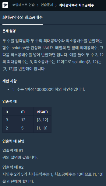 [프로그래머스] JS 최대공약수와 최소공배수 본문