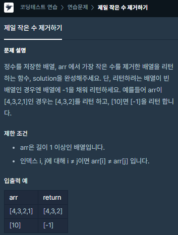 [프로그래머스] JS 제일 작은 수 제거하기 본문