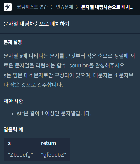 [프로그래머스] JS 문자열 내림차순으로 배치하기 본문