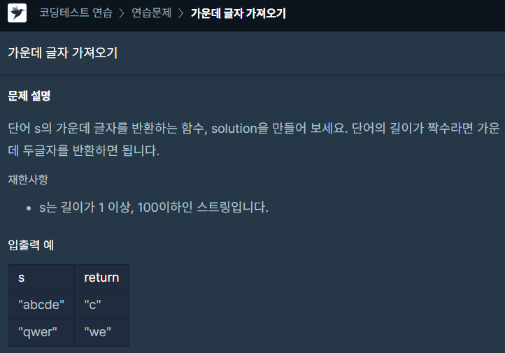 [프로그래머스] JS 가운데 글자 가져오기 본문