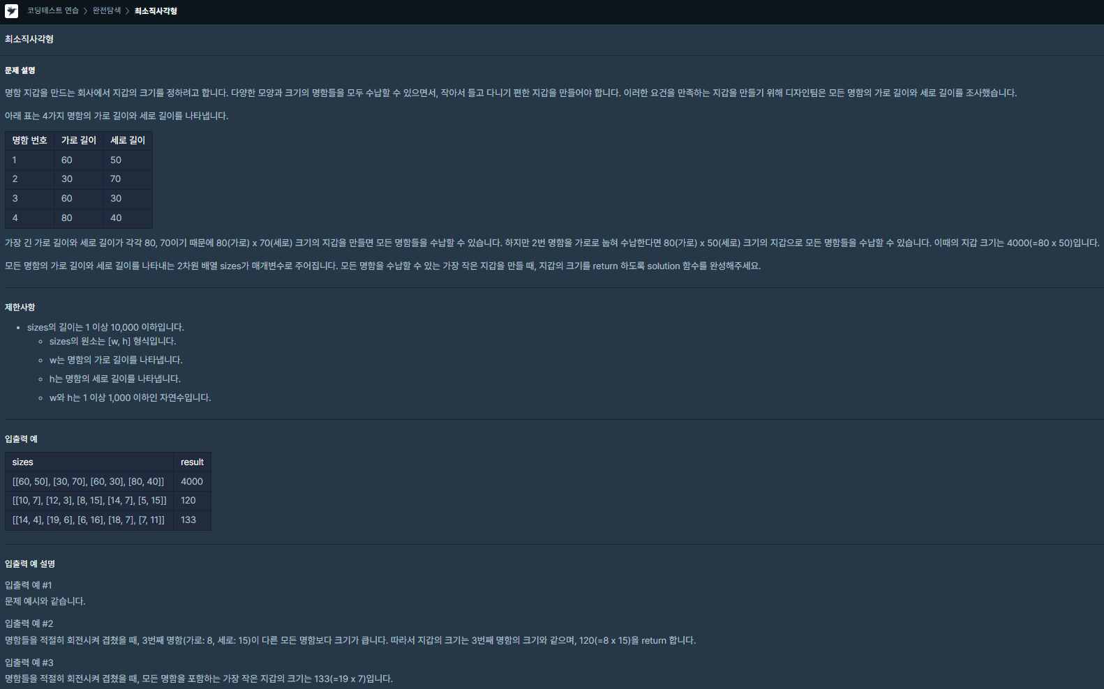 [프로그래머스] JS 최소직사각형 본문