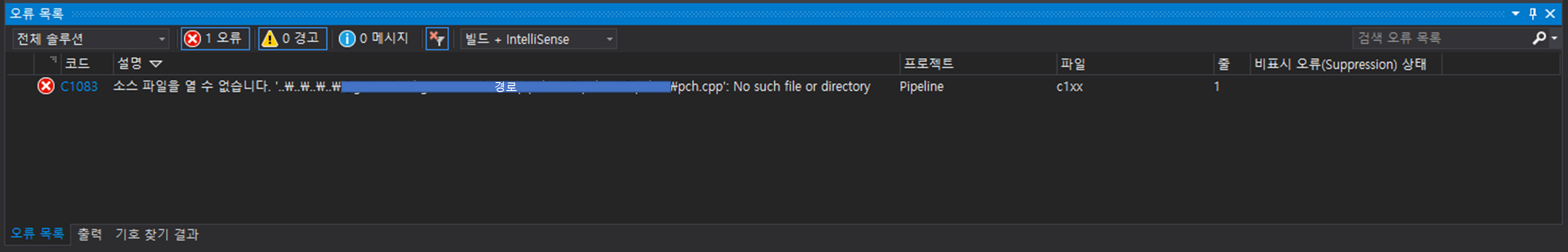 [에러] 소스 파일을 열 수 없습니다. '(파일경로...)\pch.cpp': No such file or directory