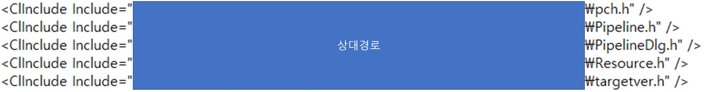 메모장을 열어서 내용을 쭉~ 내려보면 <ClInclude Include=""/> 라는 태그 안에 경로가 입력되어 있는 부분이 있을거다.
