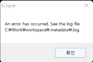 [에러] An error has occurred. See the log file (파일경로).metadata\.log 본문