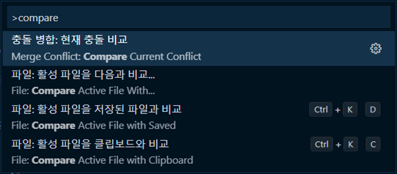 VSCode를 이용하면 다른 툴을 설치하지 않고도 파일을 비교할 수 있다.