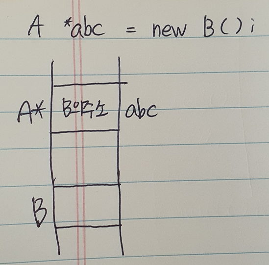 위의 그림에서 B객체는 이름이 존재하지 않기 때문에 포인터변수로 선언한 abc가 아니면 사용할 수 없다.