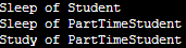 void Sleep() { cout<<"Sleep of PartTimeStudent"<<endl;}