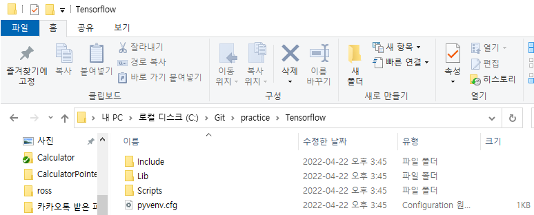 생성된 Tensorflow 폴더가 보이는가!