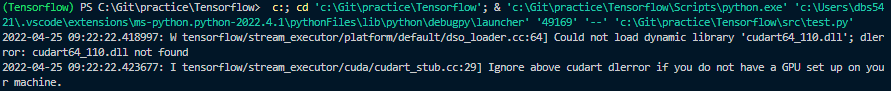 [TENSORFLOW_ERROR] Could not load dynamic library 'cudart64_110.dll'; dlerror: cudart64_110.dll not found 본문