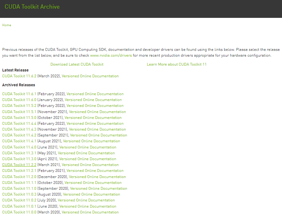 아래 링크로 들어가 쿠다 11.2.2를 다운받자.