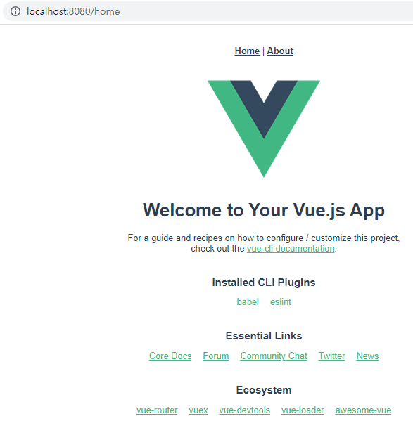 그리고 소스 29번째 라인에 mode: 'history'라고 있는데, 이 부분이 없으면 URL에 불필요한 /#/이 추가 된다. 그래서 어느 페이지로 이동해도 라우터 경로와 포트 번호 사이에 /#/가 포함되게 된다.