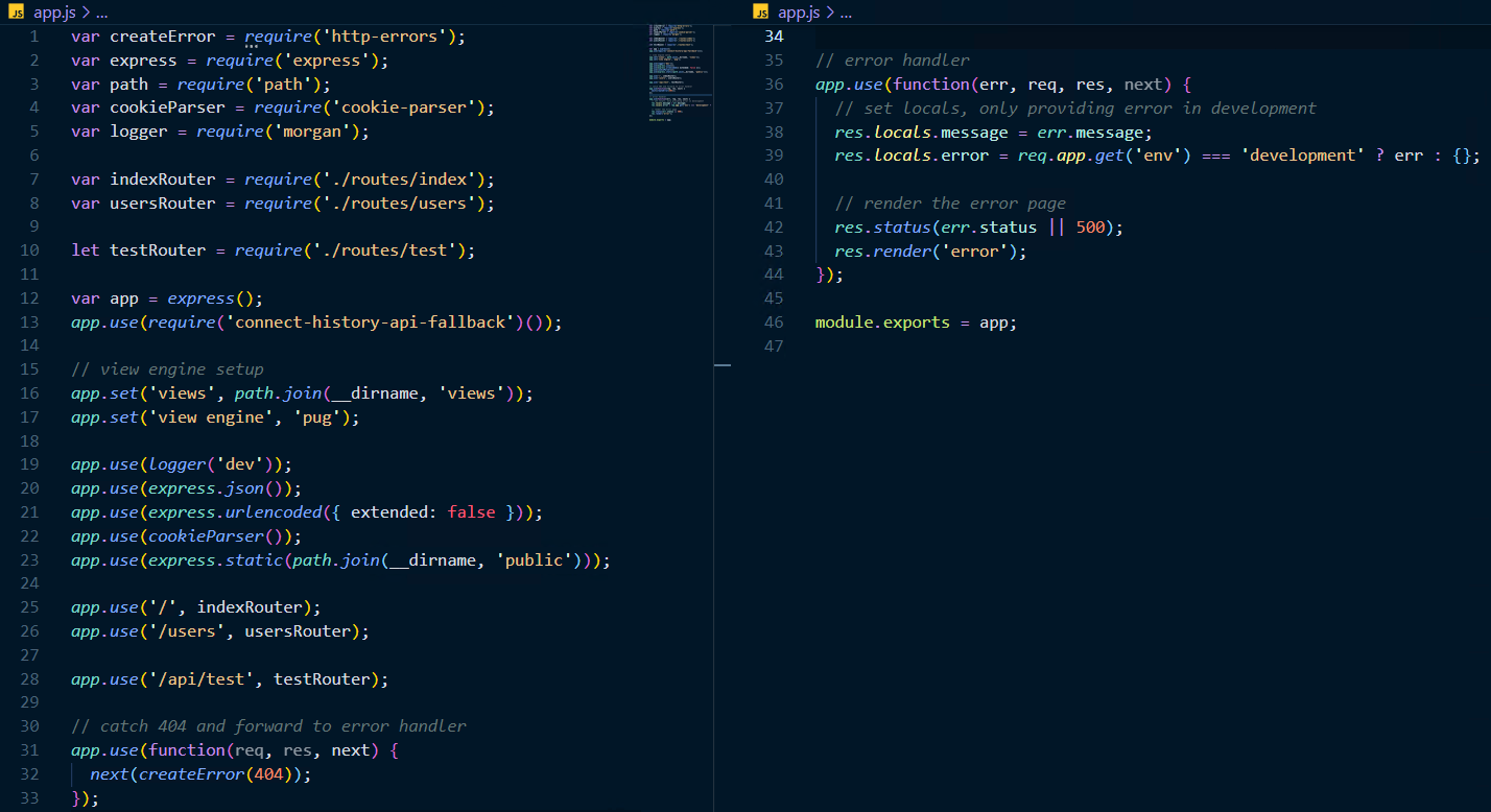 + backend에서 app,js파일이 조금씩 소스가 추가됐는데 어느 과정에서 소스가 추가 된거였는지 기억이 잘 안난다. 그래서 통째로 캡쳐해서 올려두겠다.