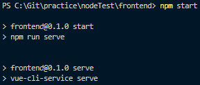 TMI) 원래 npm run serve를 하면 아래와 같이 >frontend@0.1.0 serve >vue-cli-service serve 이렇게 두 줄만 생기는데 npm start를 만들어 줘서 >frontend@0.1.0 start >npm run serve >frontend@0.1.0 serve >vue-cli-service serve 총 네 줄이 생겼다.