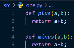 우선 아래 캡쳐화면을 보면 one.py에 plus함수, minus함수를 정의해 주었다.